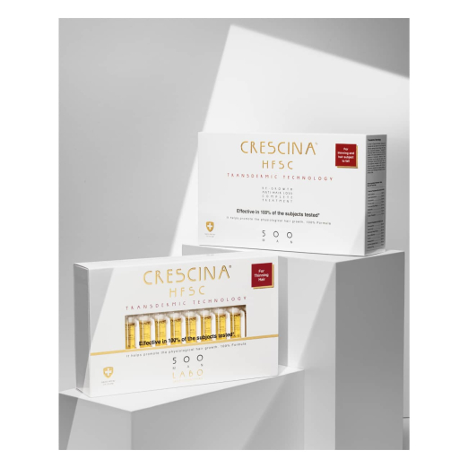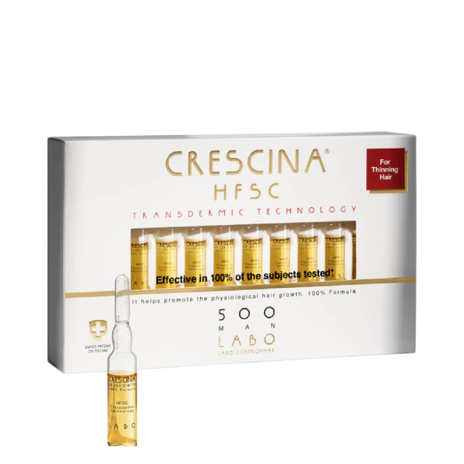 Crescina HFSC Transdermic Complete Treatment 500 Man is a professional-grade treatment for men looking to restore hair thickness and prevent loss.