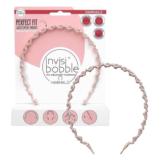 invisibobble Hairhalo Pink Sparkle is a hair accessory for all hair types focused on providing a pain-free and personalized fit.
