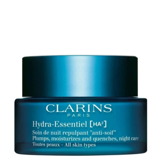 Clarins Hydra-Essentiel Plumping Moisturizing Night Cream provides intense hydration and combats dehydration in all skin types.